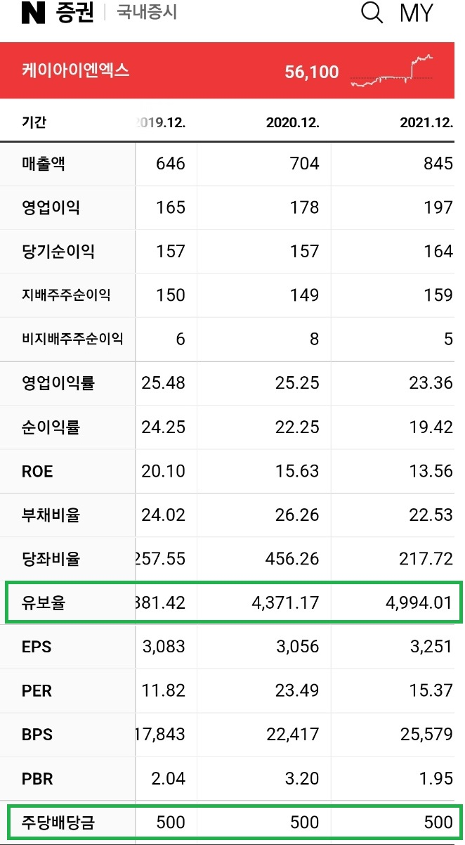 케이아이엔엑스는 성장주임에도 재무가 굉장히 튼튼합니다. 보유 현금이 많고 안정적으로 회사를 운영한다는 느낌을 강하게 받았습니다. 현금이 필요 이상으로 많다고 생각하시는 분들은 신사업을 위하여 적극적으로 활용하거나 무상증자 등 주주환원 정책에 조금 더 적극적으로 사용되기를 기대하시기도 하더라구요. 또한, 1%에 가까운 배당을 받는 것도 매력적입니다. 이런 장점들은 지금과 같은 힘든 시기를 버텨내는 힘의 원동력이 됩니다. 추후, 시장의 대내외적 여건이 개선되어 다시 성장주가 주목을 받을 수 있는 시기에는 결실을 맺을 수 있겠죠.